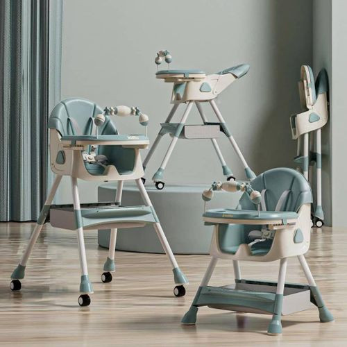 The chair can be used as a high chair, low chair, with wheels, adjustable footrest, removable food tray, BPA free, sturdy construction and durable materials to ensure it's safe for babies and children. The adjustable and detachable five-point safety belt can effectively protect your baby. The rounded corners of the chair are fully designed to prevent your child from bumping and injury. Removable soft seat cushion provides comfortable support for children and footrest for added comfort. The large tray has three adjustable positions to change the distance from the seat to keep the baby in the most comfortable state. In addition, the tray can be removed directly for easy cleaning. Easy to clean, the tray can be safely placed in the dishwasher, and the leather seat is easily detachable. The body of the high chair can be completely disassembled, and it is easy to The supportive seat cushion helps keep baby comfortable, adapts to your child's different stages of growth. The stairs are easy to wipe down, the straps and seat cushion can be easily wiped down and machine washed. With 360 degree rotatable wheels, keep your baby close and within reach 2 different height dining chair fits children from 4 months to 5 years.